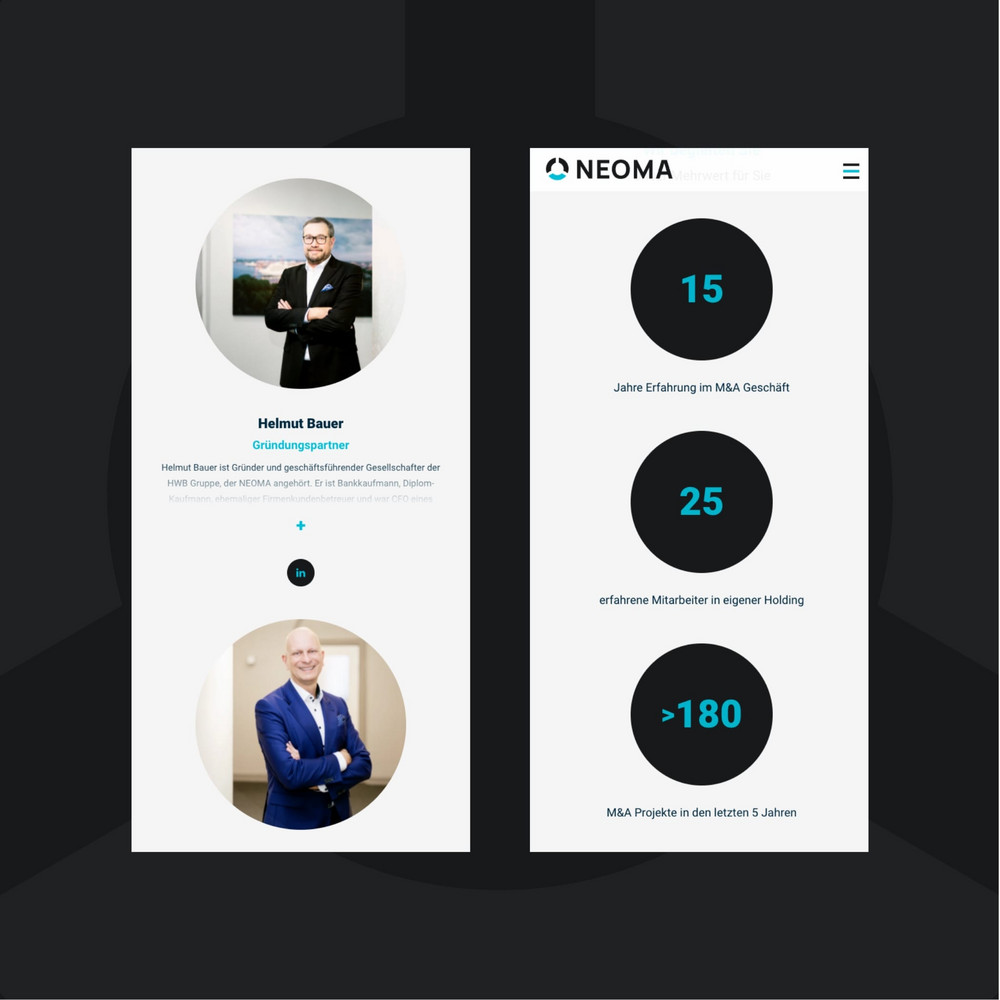 NEOMA ist ein Teil der HWB-Gruppe und fokussiert sich auf die Begleitung von digitalen Unternehmen. Wir wurden mit der Aufgabe betraut, ein Logo zu entwickeln, das Eigenständigkeit ausstrahlt, aber auch die Verbindung zur Gruppe widerspiegelt. Ebenso sollte ein neuer Web-Auftritt umgesetzt werden.