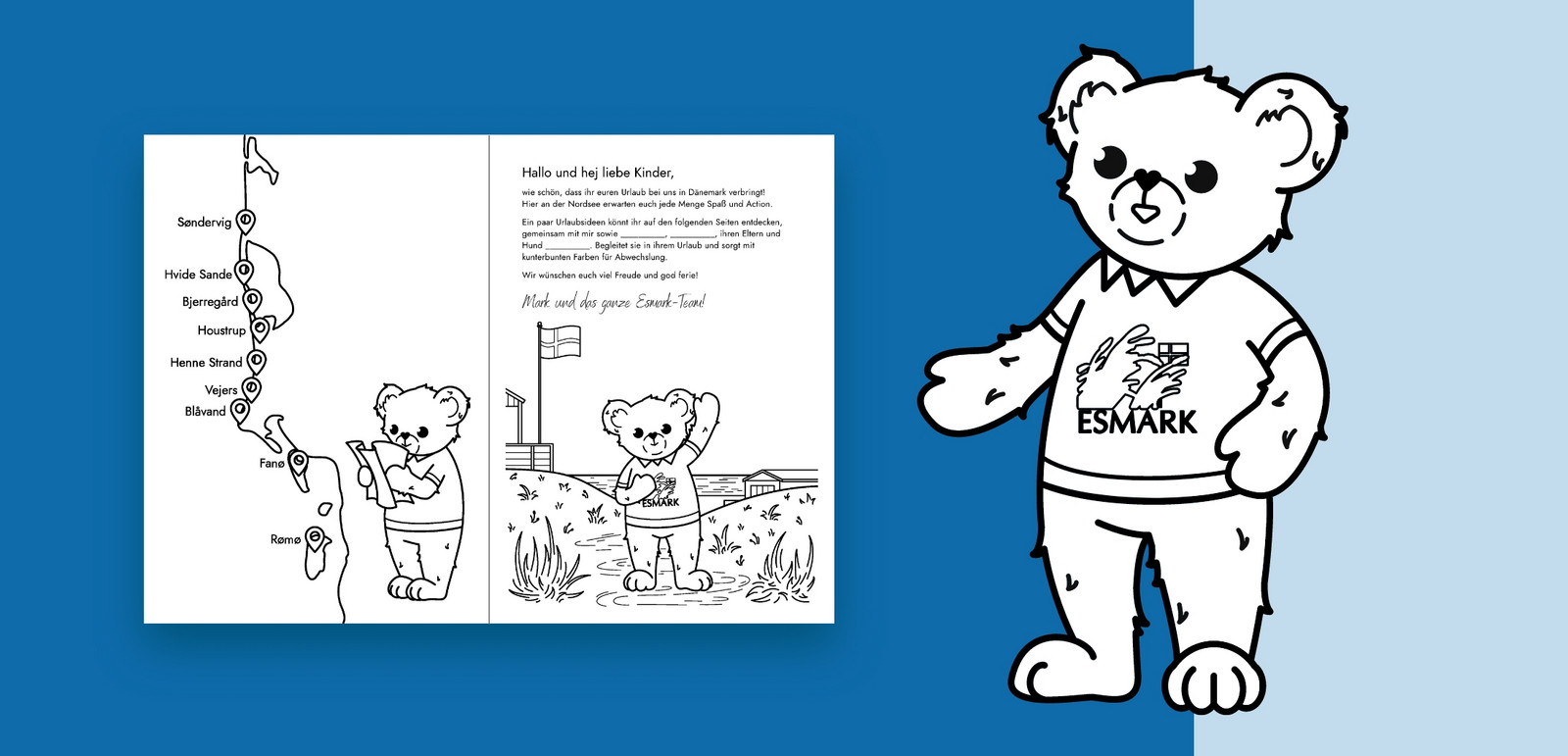 Esmark ist einer der größten Ferienhaus-Vermieter an der dänischen Westküste. Insbesondere Familien nutzen die Möglichkeit gerne, einen entspannten Urlaub im Sommerhaus zu verbringen. Um auch die Kinder von Anfang an willkommen zu heißen, hat HOCHZWEI ein fröhliches Malbuch gestaltet.