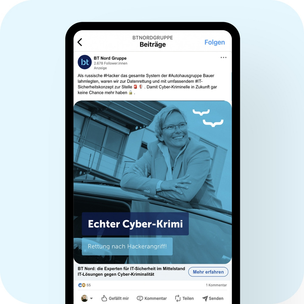 Mit mehr als 40 Jahren Erfahrung in der Branche strebt der IT-Dienstleister BT Nord in Zukunft eine gezieltere und zeitgemäßere Kommunikation an, um seine digitale Sichtbarkeit zu steigern. Hierfür sollte von HOCHZWEI eine umfassende Neuaufstellung in grafischer, inhaltlicher und technischer Hinsicht, inklusive der Modernisierung des Logos und des Corporate Designs erfolgen. Im Rahmen dessen wurden ein neuer Internetauftritt im aktualisierten Design entwickelt, Geschäftsunterlagen angepasst sowie Werbeanzeigen für Social Media und Google aufgestellt. Die Kommunikation sollte auf den B2B-Bereich ausgerichtet werden, insbesondere auf Geschäftsführer und Entscheider im Mittelstand, um diese auf eine ansprechende und effektive Weise anzusprechen.