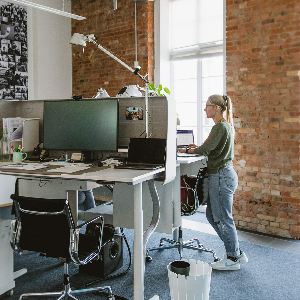 Unser Anspruch ist es, unseren Mitarbeitenden gleichermaßen zeitgemäße wie attraktive Arbeitsplätze zu bieten – vom technischen Equipment bis zur teamgeistfördernden Atmosphäre. Dabei geht es sowohl darum, das bestmögliche „Handwerkszeug“ für unsere täglichen Aufgaben bereitzustellen, als auch darum, ein motivierendes Umfeld zu schaffen, das Wertschätzung gegenüber jedem Einzelnen zeigt. Aus diesem Grund ist es Teil unserer Philosophie, alle Arbeitsplätze gleichwertig auszustatten – vom Praktikanten bis zum Geschäftsführer, vor Ort wie im Homeoffice.