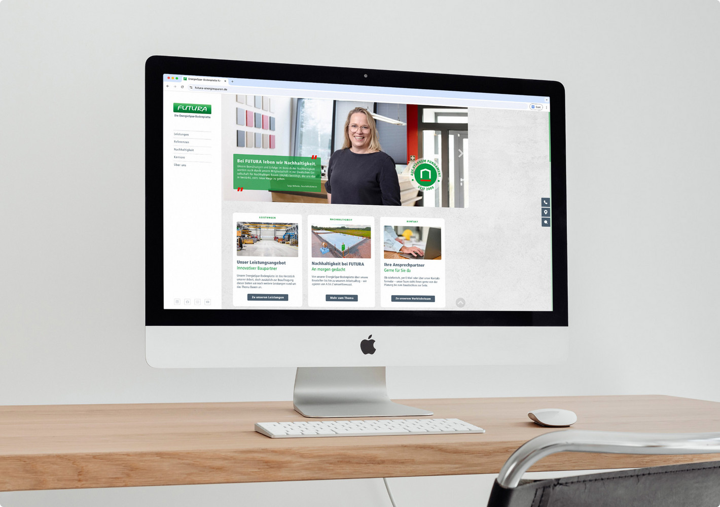 FUTURA steht aktuell – wie die gesamte Baubranche auch – vor enormen Herausforderungen. Seine Kunden- und Auftragstypen haben sich in den letzten Jahren maßgeblich verändert und so ist nun auch eine kommunikative Neuausrichtung zum Vertrieb der EnergieSpar-Bodenplatte unabdingbar. Künftig soll die Website daher den jeweiligen Interessenten und seine Bedürfnisse zielgruppenspezifisch ansprechen, einen besonderen Schwerpunkt auf die Themen Nachhaltigkeit und Energieeffizienz legen und die Erfahrung sowie das Know-how des Unternehmens in den Fokus stellen. Außerdem sollte die Nutzbarkeit des Fundaments für Gewerbekunden stärker hervorgehoben werden. HOCHZWEI hat sich dieser Aufgabe angenommen und dabei sowohl leichte optische als auch größere strukturelle und textliche Änderungen umgesetzt.